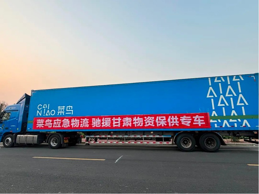 地震发生后,菜鸟启动应急机制,联合中国红十字基金会等机构,第一时间开展应急物资运输等工作。在中国红十字基金会、浙江省青少年发展基金会的调度下,菜鸟派出的应急物流车辆已从成都、桐乡等地出发,并联动航空公司,通过支线揽收、航空运输、陆运接驳等方式配送运输,将赈济家庭箱、羽绒服等物资送达甘肃地震灾区。